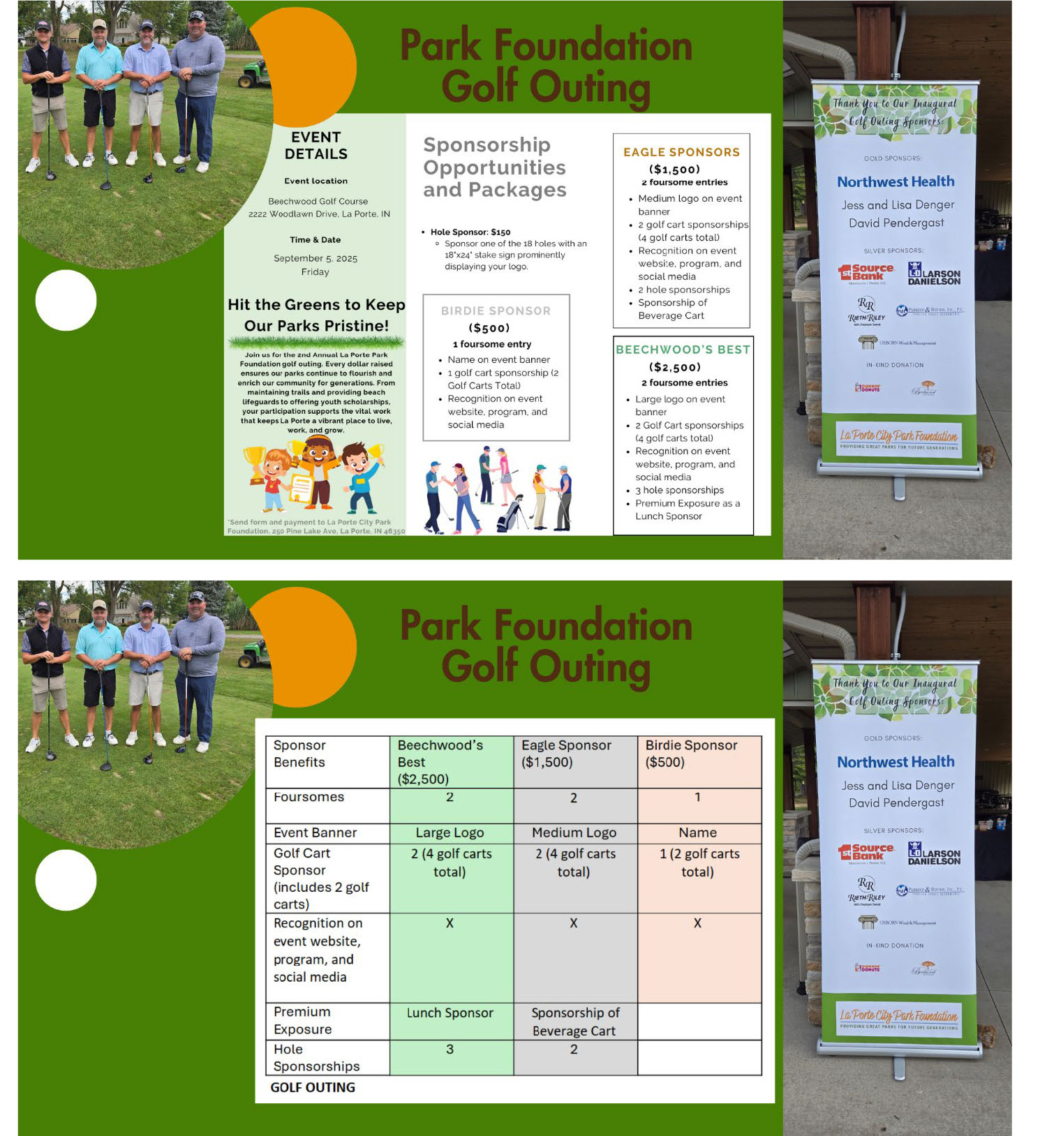 Join us for the 2nd Annual La Porte Park Foundation Golf Outing on Friday, September 5 at Beechwood Golf Course—spots are filling fast! Every dollar raised ensures our parks continue to thrive, supporting everything from trail maintenance and beach lifeguards to youth scholarships. Foursomes are only $400, and sponsorships start at $150. Don’t miss your chance to make a difference and enjoy a great day of golf.